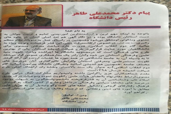سپس حجت الاسلام والمسلمین حمزه، متن پیام رئیس دانشگاه شهید باهنر کرمان را قرائت کرد: