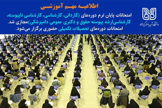 اطلاعیه مهم دانشگاه شهید باهنر کرمان درباره امتحانات پایان ترم