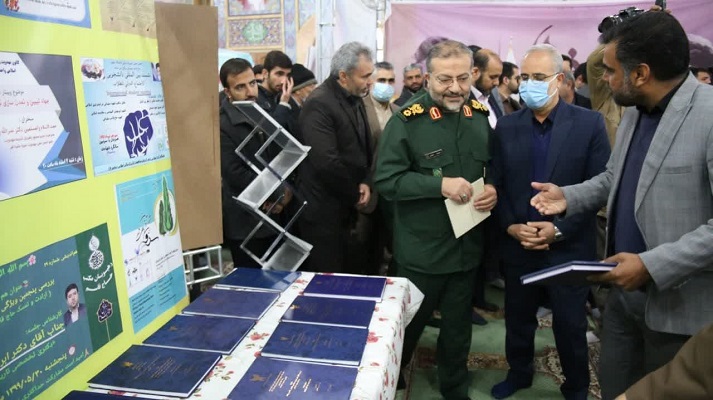 بازدید رئیس سازمان بسیج مستضعفین از غرفه دستاوردهای پژوهشی مکتب شهید حاج قاسم سلیمانی دانشگاه در مصلای کرمان