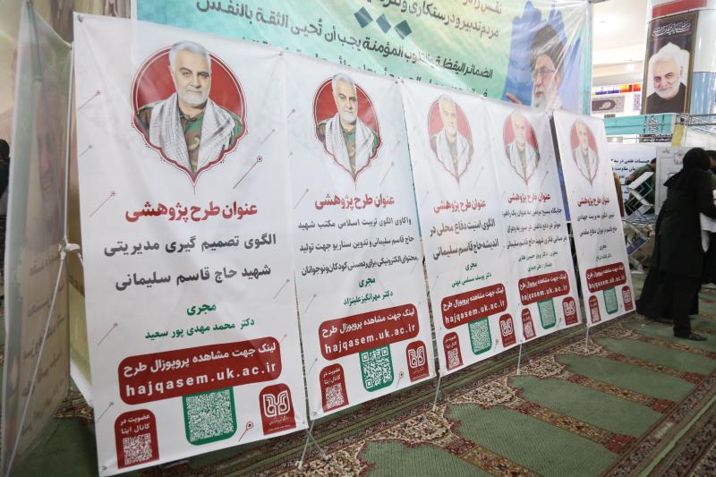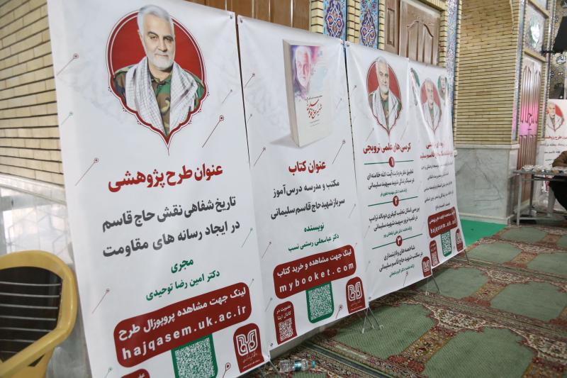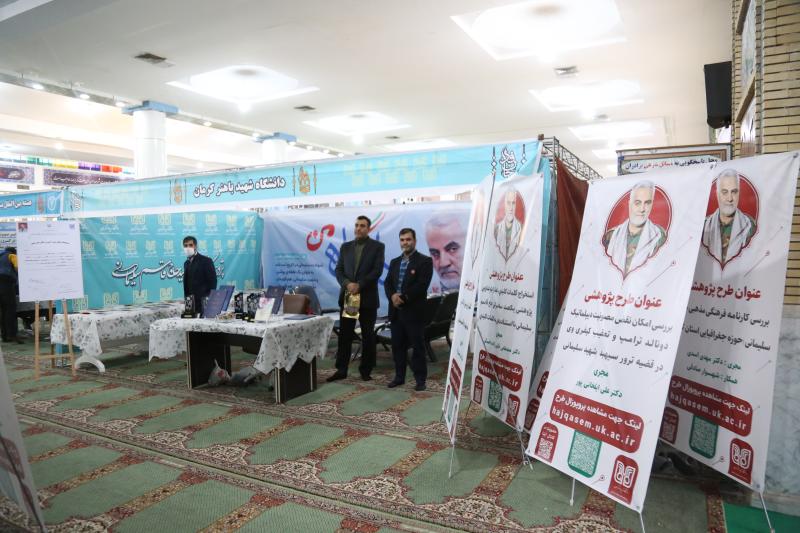 به گزارش روابط عمومی دانشگاه شهید باهنر کرمان، در هشتمین روز از دهه مقاومت و گردهمایی اصحاب علم، فرهنگ، هنر و رسانه استان کرمان، ابتدا سردار غلامرضا سلیمانی رئیس سازمان بسیج مستضعفین به همراه جمعی از مسئولین استان از نمایشگاه و غرفه دستاوردهای پژوهشی مکتب شهید حاج قاسم سلیمانی دانشگاه بازدید و از آثار برتر پژوهشی در زمینه مکتب شهید حاج قاسم سلیمانی تقدیر کرد و افزود: صاحبان اندیشه در همه عرصه‌ها می‌توانند از یک منظر متفاوت به بحث شخصیت سردار دلها بپردازند.