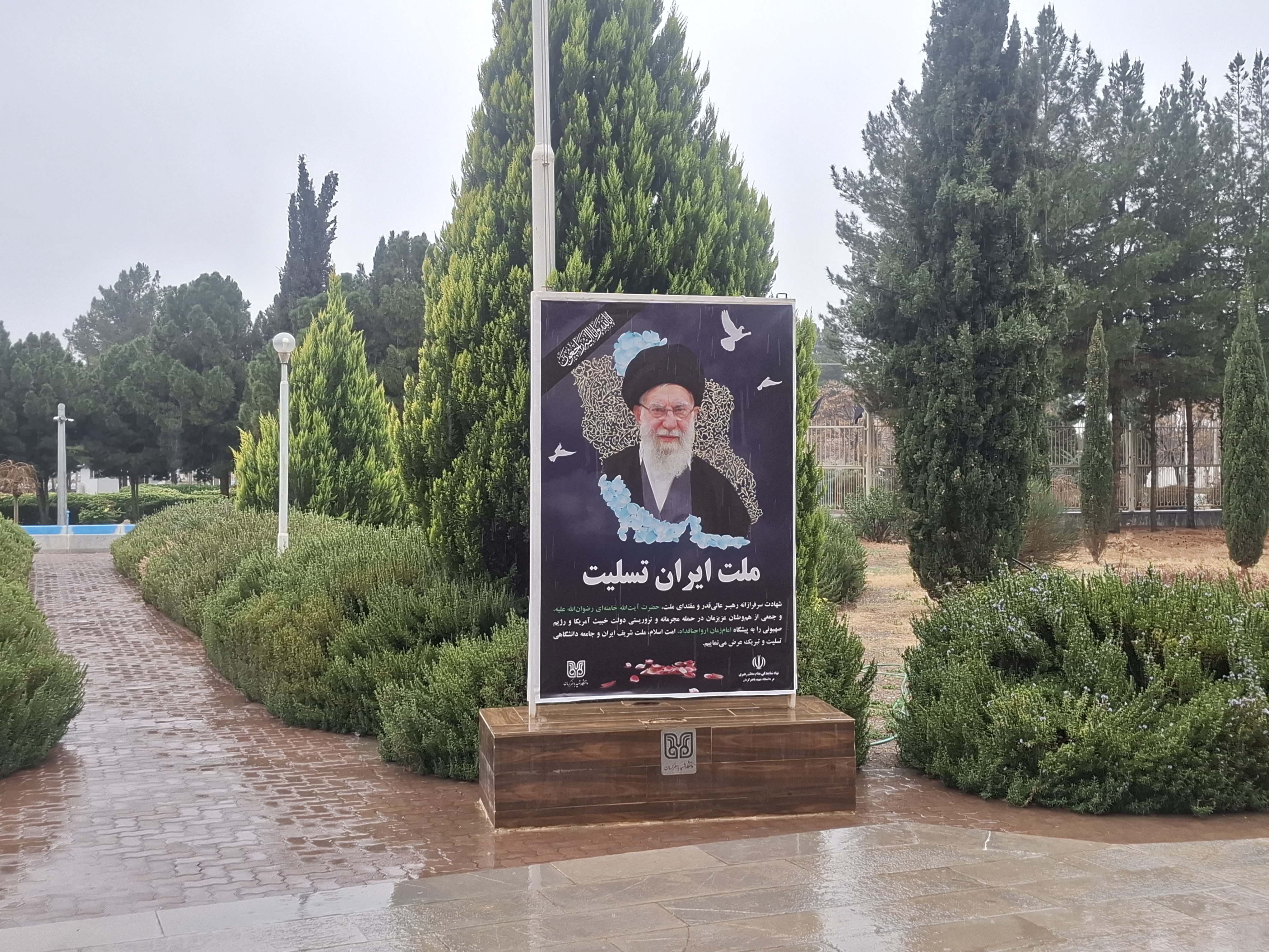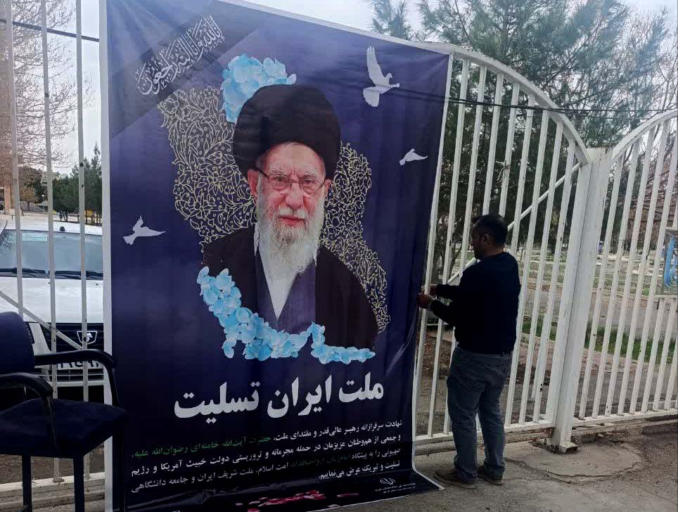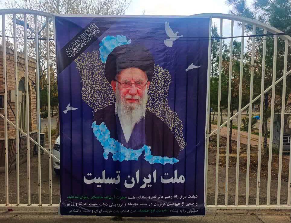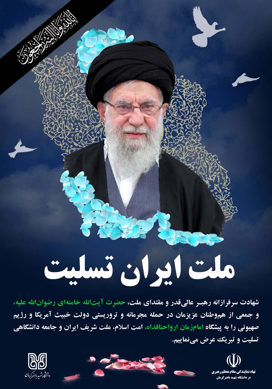 فضاسازی محیطی توسط جامعه دانشگاهی شهید باهنر کرمان به مناسبت شهادت مقام معظم رهبری حضرت آیتالله خامنهای (رضوانالله تعالی علیه)، جمعی از فرماندهان، مدافعان اقتدار و هموطنان عزیزمان به دست رزیم منحوس صهیونیستی و دولت جنایتکار آمریکا