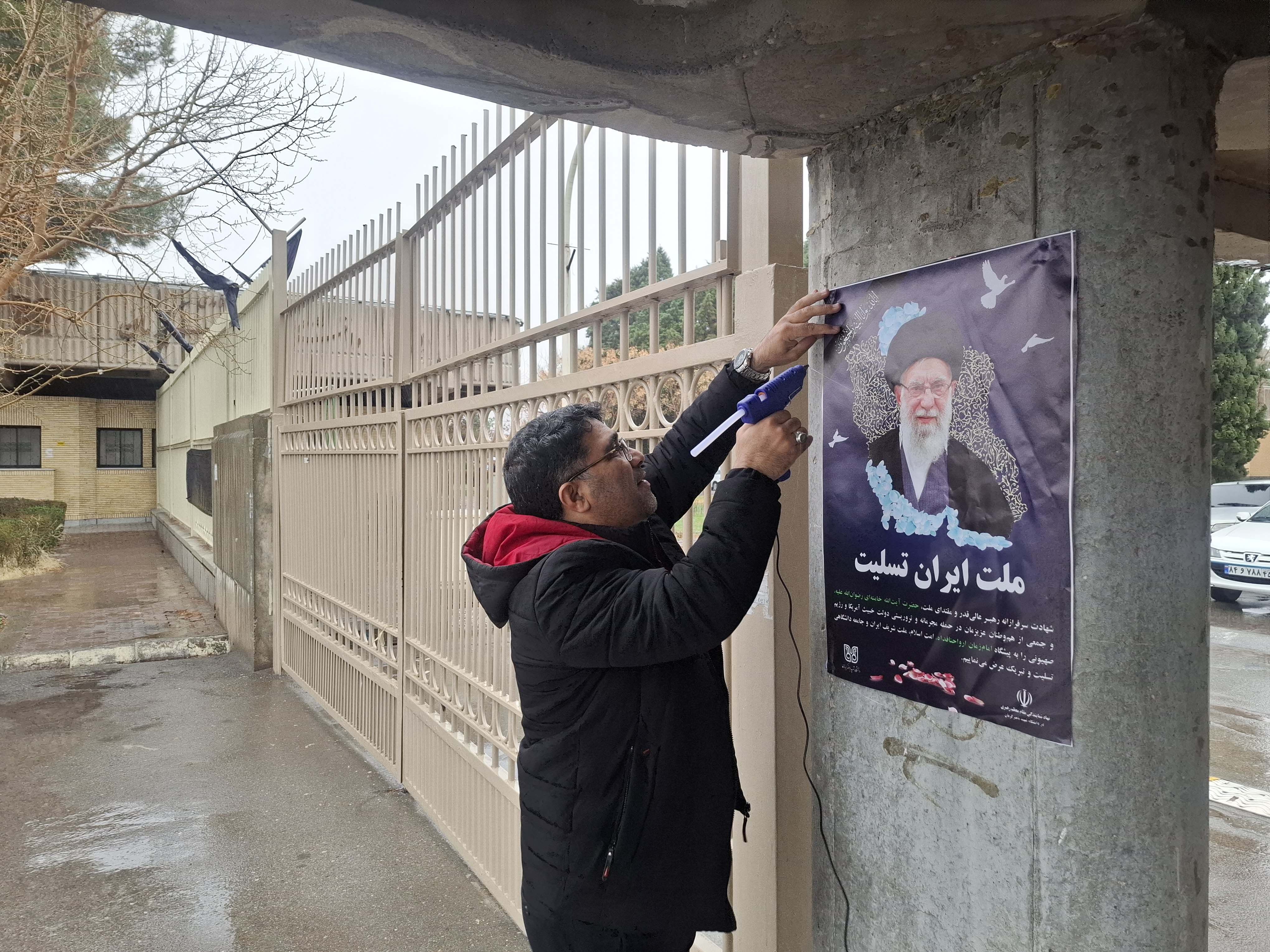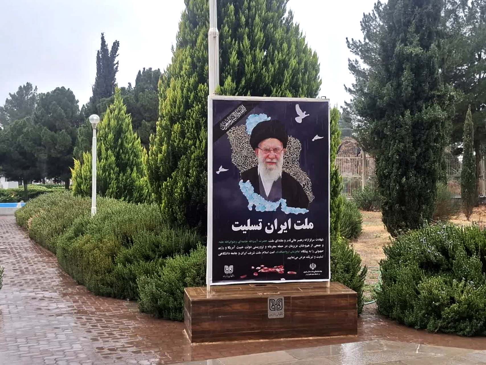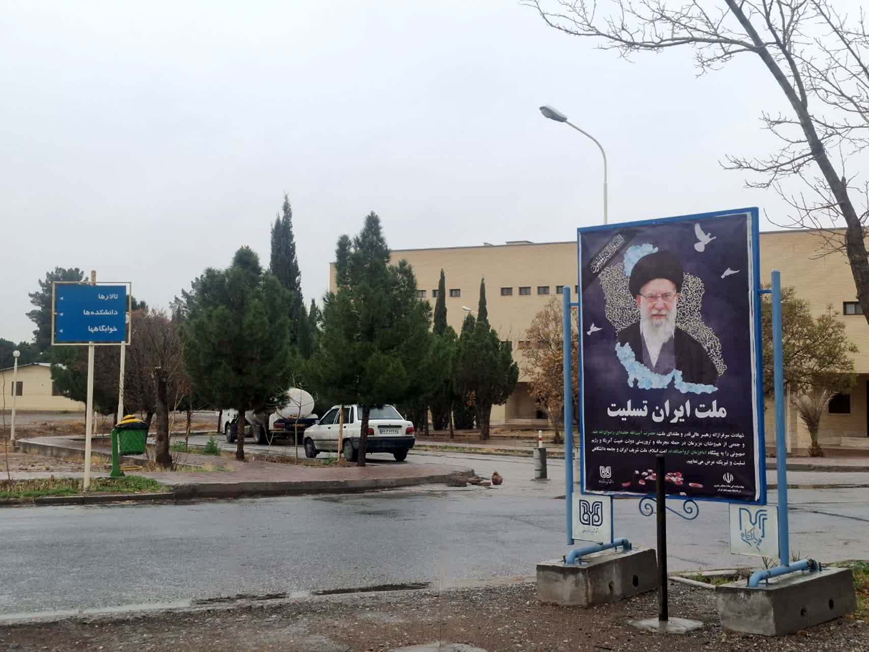 فضاسازی محیطی توسط جامعه دانشگاهی شهید باهنر کرمان به مناسبت شهادت مقام معظم رهبری حضرت آیتالله خامنهای (رضوانالله تعالی علیه)، جمعی از فرماندهان، مدافعان اقتدار و هموطنان عزیزمان به دست رزیم منحوس صهیونیستی و دولت جنایتکار آمریکا