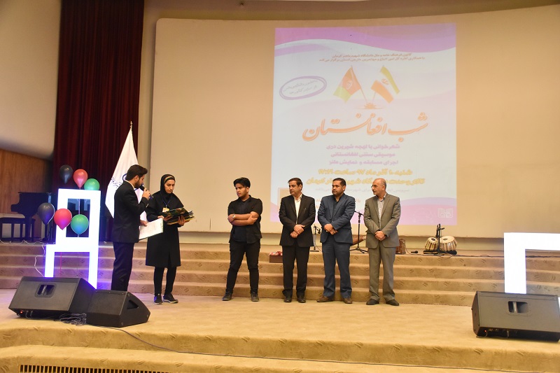 به همت کانون فرهنگ عامه و ملل اداره کل امور فرهنگی دانشگاه شهید باهنر کرمان و با همکاری اداره کل امور اتباع و مهاجرین خارجی استان کرمان، ویژه برنامه شب افغانستان، برای کلیه دانشجویان افغانستانی شاغل به تحصیل در دانشگاه‌های استان کرمان، شامگاه شنبه 10 آذر ماه 97 در تالار وحدت دانشگاه، برگزار شد.