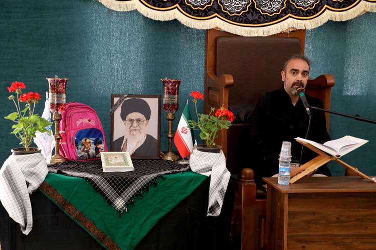 سخنران اصلی این مراسم آیتالله علیمرادی نماینده مردم کرمان در مجلس خبرگان رهبری با بیان ابعاد شخصیتی رهبر شهید بهویژه در بعد مبارزه با دشمن، حیات ایشان را جلوهای از حیات طیبه پیامبر اکرم (ص) و ائمه اطهار علیها السلام توصیف کرد که سرانجام آن نیز شهادت و افتخاری بزرگ بود.
