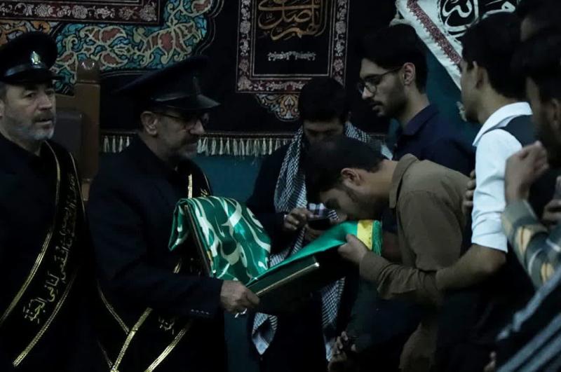 حضور سفیران کریمه اهل‌بیت (سلام‌الله علیها) همراه با پرچم متبرک حرم حضرت معصومه (س) در جمع دانشگاهیان