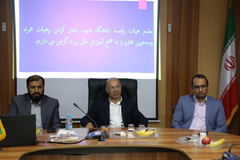 دکتر علی الهی رئیس مجتمع آموزش عالی زرند ضمن خوشامدگویی به میهمانان افزود: این دانشکده در سال ۱۳۷۰ در زمینی به وسعت ۲۸ هکتار به همراه  ۵ هزار مترمربع فضای فیزیکی (نیمه‌کاره) از طرف شرکت توانیر به نام دانشگاه شهید باهنر برای تأسیس مجتمع آموزش عالی زرند واگذار شد. از سال ۱۳۹۳ هم‌زمان با ارتقا مجتمع، قریب ۷ سال دوره استقلال را تجربه کرد و مجدداً از سال ۱۴۰۰ به دانشگاه شهید باهنر کرمان ملحق شد و رضایتمندی اعضای هیئت‌علمی و دانشجویان را در پی داشت. به‌نحوی‌که وضعیت پذیرش دانشجو نیز بهبود پیدا کرد. ولی حذف ردیف بودجه این مجتمع به نفع شهرستان، استان، دانشگاه و مجتمع نبود!