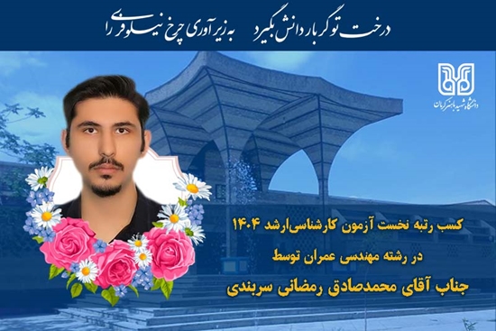محمدصادق رمضانی سربندی با کسب رتبه ۱ کشوری در آزمون ارشد، نشان داد که دانشجویان دانشگاه شهید باهنر کرمان شایستگی درخشش در سطح ملی و فراملی را دارند.